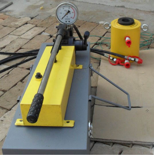 壓動(dòng)油泵手柄,用力應(yīng)均勻,不要用力過(guò)猛,當(dāng)壓力表上的讀數(shù)達(dá)到要求時(shí),停止加壓。