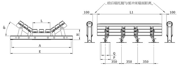 *槽角(θ°)及 H高度值可依槽形托輥需求設計