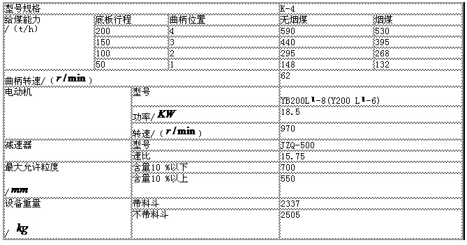K-4型往復(fù)式給煤機(jī)的技術(shù)參數(shù)