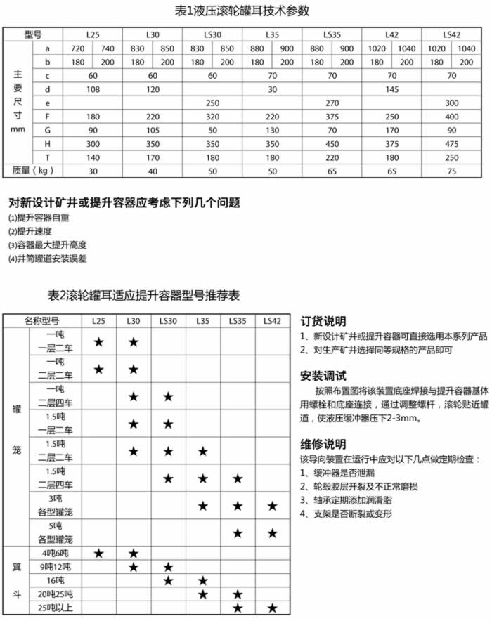 聚胺脂橡膠滾輪罐耳裝置(簡稱滾輪罐耳),是參考多年來各礦井使用滾輪罐耳的形式,廣泛吸取用戶的使用意見改進而成??筛鶕脩舻氖褂脳l件和要求,可采用橡膠緩沖、彈簧緩沖、碟簧緩沖、液壓緩沖、復合緩沖。其使用壽命長、安全可靠性高、維護方便等特點。