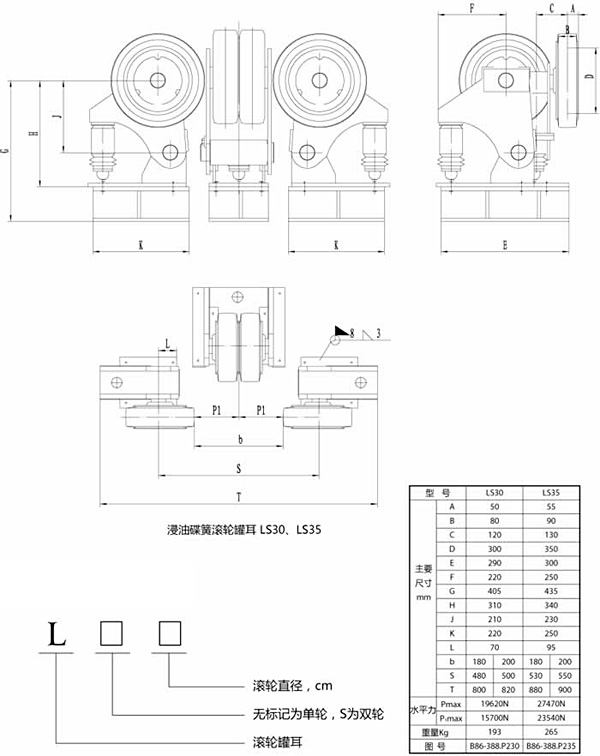 雙排液壓滾輪罐耳可根據用戶的使用條件和要求,可采用橡膠緩沖、彈簧緩沖、碟簧緩沖、液壓緩沖、復合緩沖。其使用壽命長、安全可靠性高、維護方便等特點。