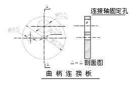 由上圖可知,連接軸與連接板之間的固定主要是依靠焊接,采用J422中碳鋼焊條,焊縫為10毫米,基本上可以達(dá)到母體(軸)的強(qiáng)度,另一端通過軸承與曲軸固定連接,而給煤機(jī)在實(shí)際運(yùn)行過程中,一般有兩種比較大的受力狀態(tài):1、煤倉的存煤較多;2、大的砟塊直接砸在往復(fù)板上對設(shè)備造成的沖擊。由于是焊接斷面,雖然斷面的焊接強(qiáng)度可以達(dá)到要求,但是其塑性和韌性均有大副下降,直接影響焊接效果而容易造成結(jié)構(gòu)斷裂的主要原因有①焊接殘余應(yīng)力;②焊接角變形和錯位;③應(yīng)力集中等原因,所以在運(yùn)行使用過程中,承受大的負(fù)荷和沖擊的能力便有所下降,容易出現(xiàn)曲柄連接板與連接軸開焊,造成事故。根據(jù)這種情況,我們設(shè)計將連接軸和連接板制作為一體,并對曲柄進(jìn)行調(diào)質(zhì)處理硬度HB200-300,既保持了原有的強(qiáng)度,又不降低韌性和塑性,使連接軸的抗沖擊能力大為增強(qiáng),如下圖: