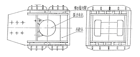 d、撓性聯(lián)接裝置是給煤機(jī)的主傳動(dòng)裝置,其是由安裝于電動(dòng)機(jī)軸及激振器軸上的兩個(gè)半聯(lián)軸器之間用4-8塊輸送帶片(或其它能傳遞一定動(dòng)力的柔性聯(lián)接片)彎曲聯(lián)接而成,這種動(dòng)力傳動(dòng)裝置使得電機(jī)把動(dòng)力傳遞給激振器,迫使激振器振動(dòng)的同時(shí)又不影響電機(jī)位置的固定。